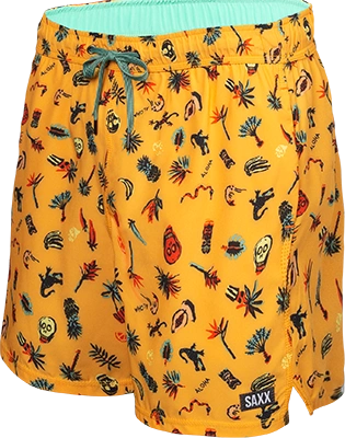 Szorty kąpielowe męskie z kieszeniami 2w1 SAXX OH BUOY krótkie, tropikalna wyspa - żółte