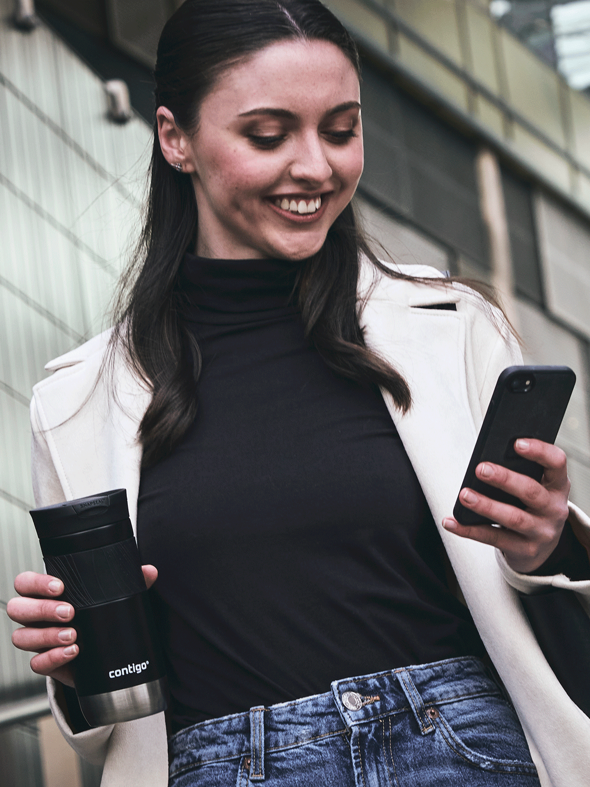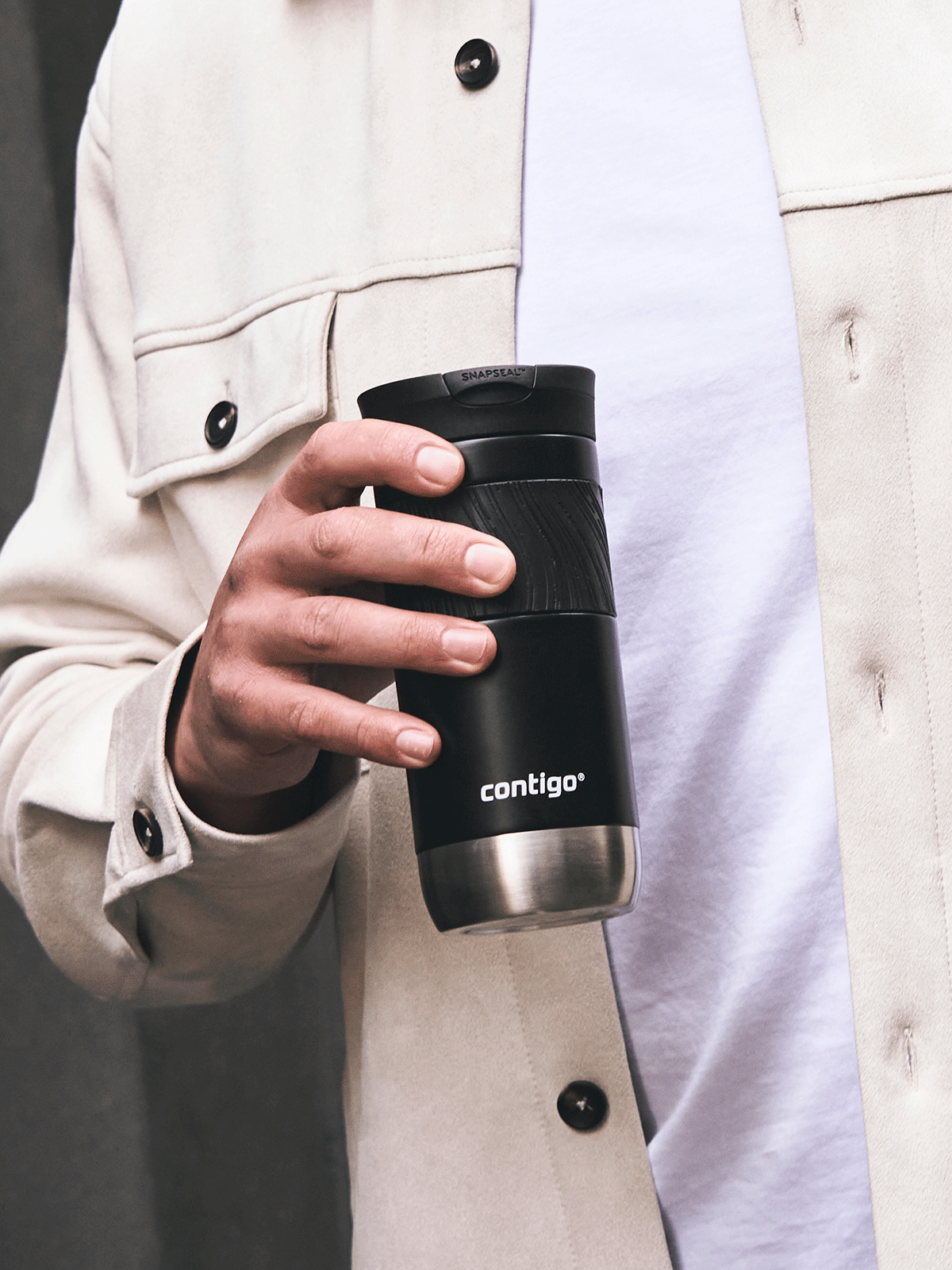 Jako pierwszą w serii Byron 2.0 Contigo na warsztat wzięliśmy silikonową osłonę znajdującą się na górnej części kubka. Umieściliśmy na niej nieregularne, wypukłe linie o różnej wielkości. Dzięki nim nawet wtedy, gdy Twoje dłonie są wilgotne,kubek termiczny Contigo Byron nie wyślizgnie Ci się z rąk.