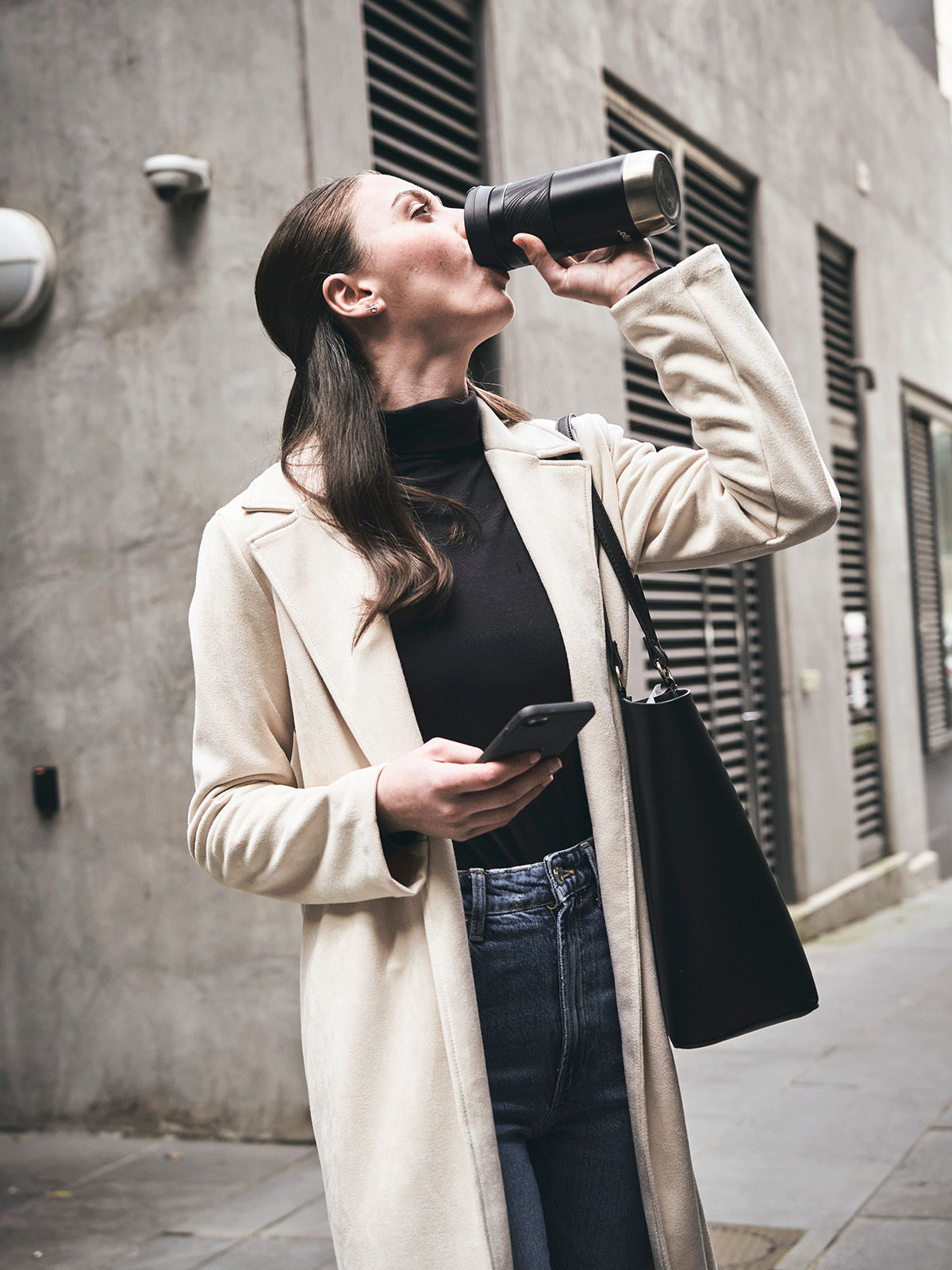 Przesuń kciukiem zamknięcie nakrętki w górę i pij, przesuń w dół – zabezpiecz ustnik. Czy może być coś prostszego? Dzięki opisanej technologii Snapseal bazującej na zatrzaskowej uszczelce kubki Byron 2.0 są niezwykle łatwe w obsłudze jedną ręką. Opisywany system zapewnia pełną szczelność produktu, który możesz dowolnie odwracać nawet do góry nogami.