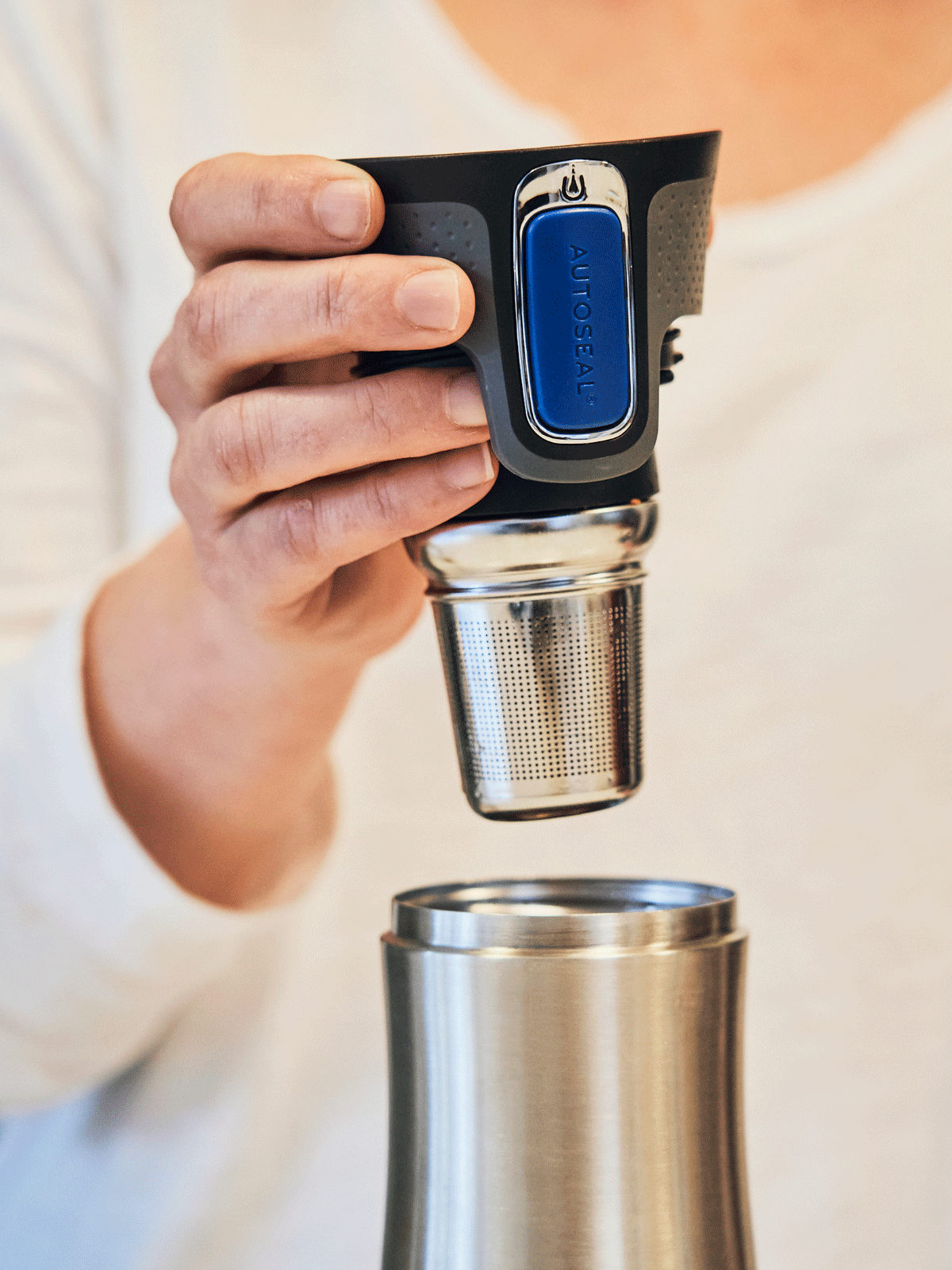 Obsługujesz go jedną ręką. Naciskasz - pijesz. Puszczasz - zamykasz. Dzięki technologii AUTOSEAL kubek jest w 100% szczelny. Dodatkowo nowa nakrętka została wyposażona w blokadę uniemożliwiającą przypadkowe naciśnięcie kiedy kubek trzymasz w torbie.