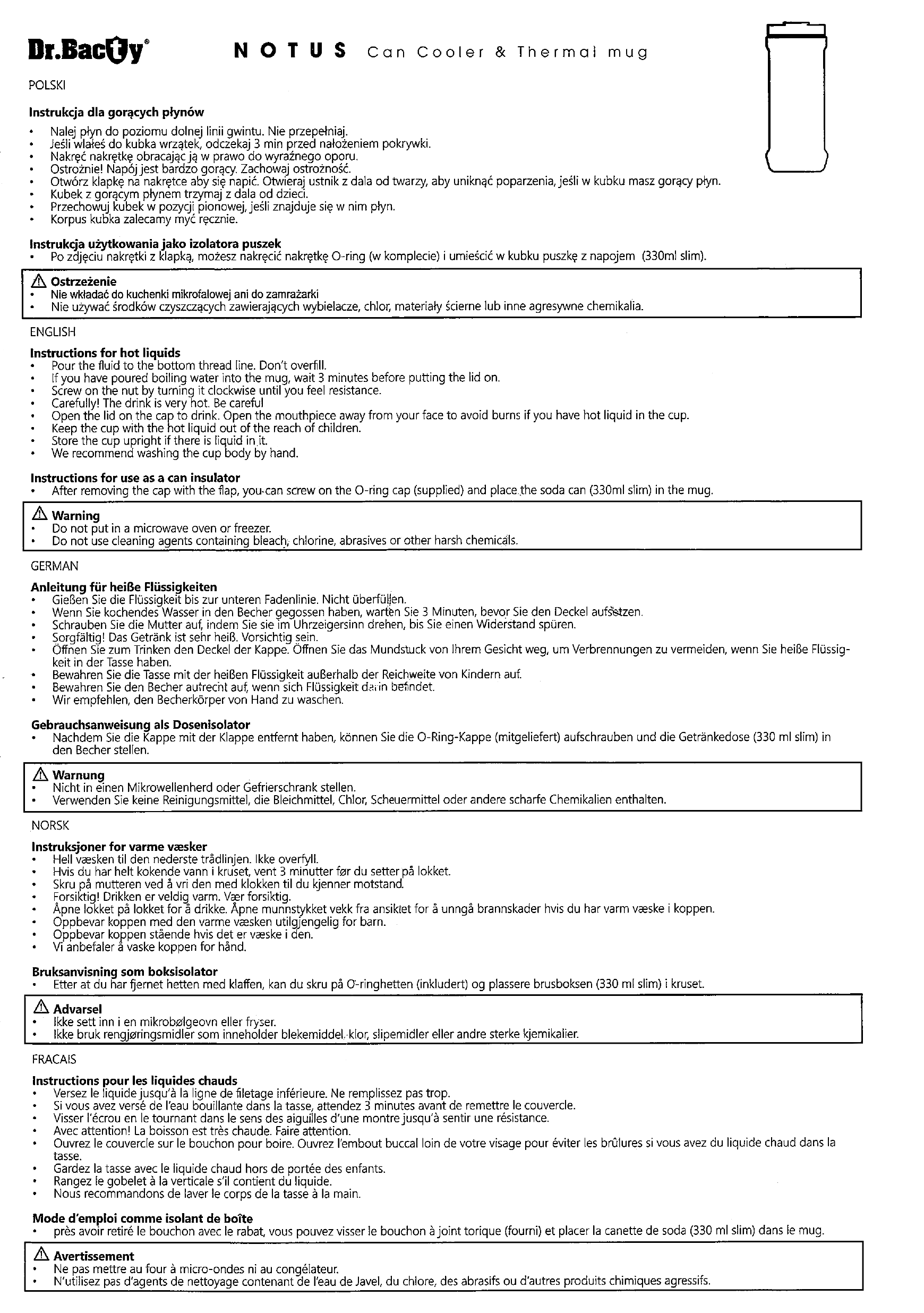 Kubek termiczny NOTUS marki Dr.Bacty. Dwa w jednym