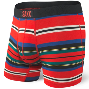 Opinie o Bokserki męskie szybkoschnące SAXX VIBE Boxer Brief nierówne pasy - czerwone
