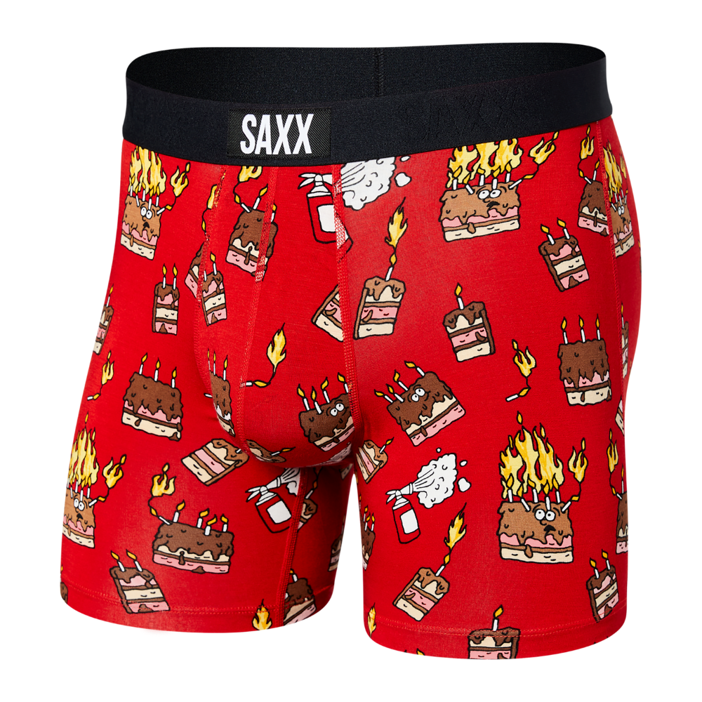 Bokserki męskie szybkoschnące SAXX VIBE Boxer Brief płonące torty - czerwone