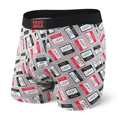Bokserki męskie wygodne SAXX ULTRA Boxer Brief Fly tabliczki z nazwami - szare