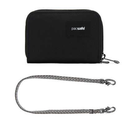 Zestaw antykradzieżowy Pacsafe – portfel RFID czarny + łańcuszek Turn’nLock™